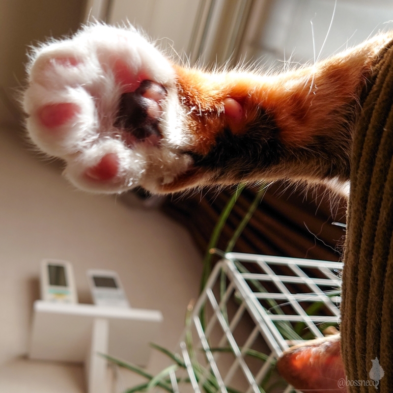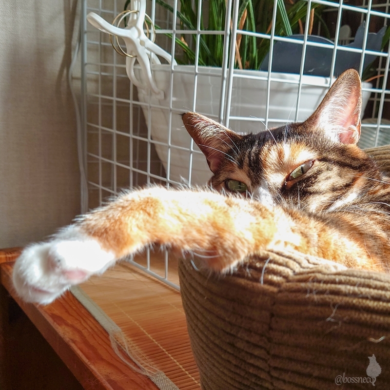 縞三毛猫お嬢様のお手手がはみ出てたので