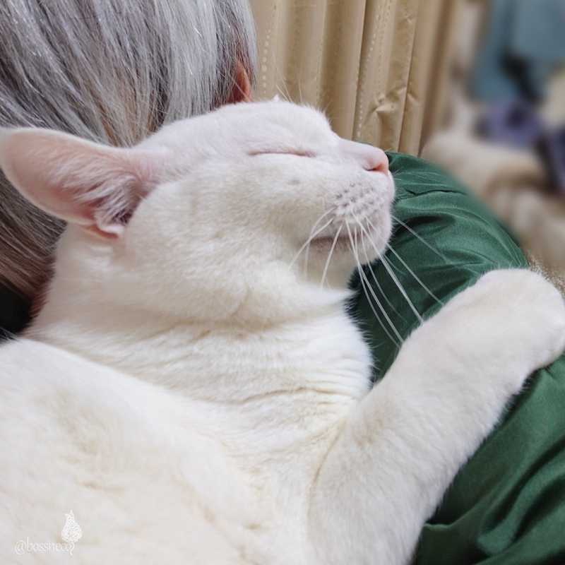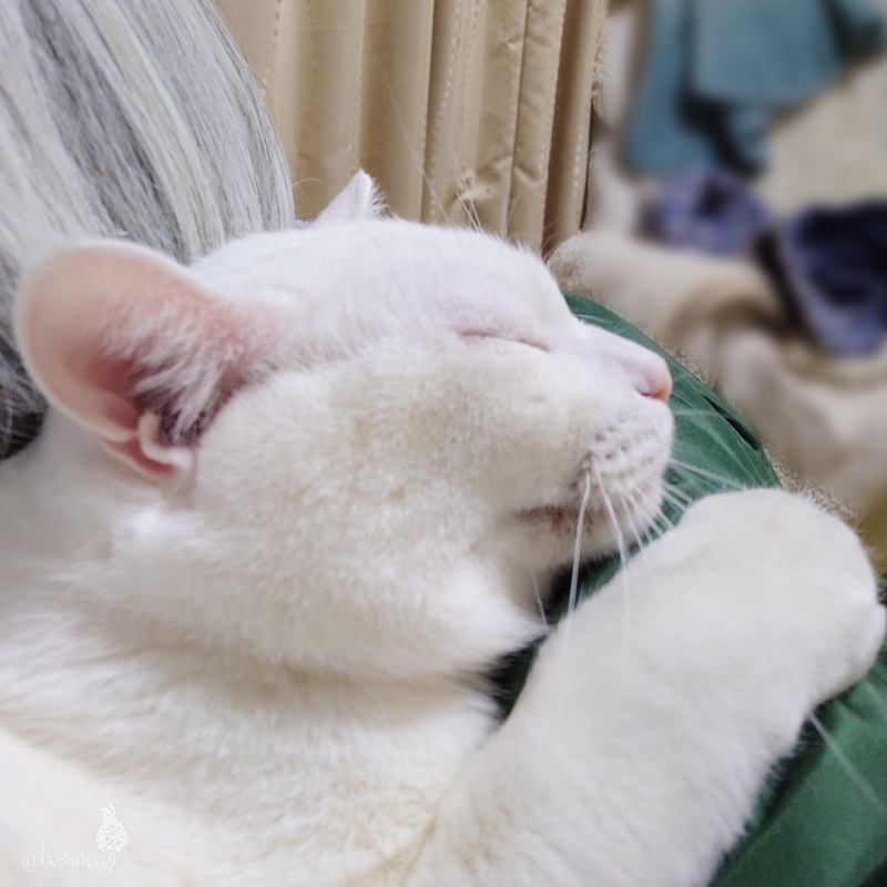 今日は腕の中ではなく しがみついて眠っている白猫Ryu♡ 離そうとしたらガシって爪立てて かわいいが過ぎるわ❤ #Caturday #Blueskyねこ部 #CatsOfBlueSky #楽しい我が家 #こんな毎日が大切 — from Bluesky 2025-01-04