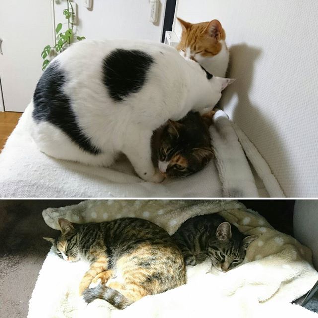 中小の兄ちゃんたちの舐め攻めから、大っきな兄ちゃんのところに逃げてきたLin💨 おやすみなさい💤 #cats #catstagram #ねこ #ねこすたぐらむ #にゃんすたぐらむ #猫 #ねこ部 #もちぽよ部 #ペコねこ部 #みんねこ #黒さば #黒きじ #きじとら #とら猫 #白黒猫 #ちゃしろ #茶白猫 #縞三毛 #しまみけ — from Instagram 2017-01-26