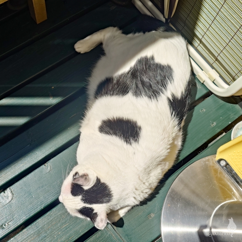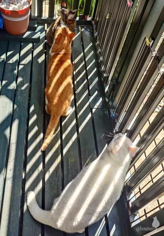 日向たっぷりなところで寝ている子と カラスを見上げている縞々~ズ #猫部 @catclub.bsky.social #楽しい我が家 #こんな毎日が大切 #毎日が猫祭 #猫好きさんと繋がりたい #今日の丸 — from Bluesky 2024-05-02