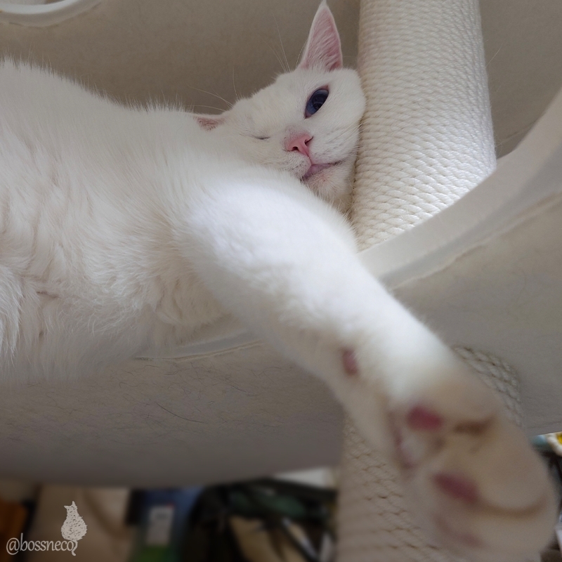 お顔半分落ちてますよ 落ちてません きりりฅ おやすみなさい💤 #Blueskyねこ部 #CatsofBlueSky #CatsofBSky #catsky #catlovers — from Bluesky 2025-10-26