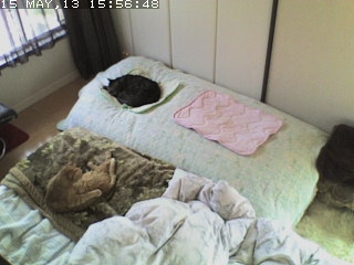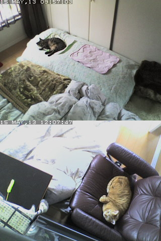 念のために布団の上に毛布を置いてきたけど、それぞれの位置で爆睡中。