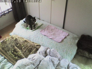 昨夜あまりに暑くて、部屋の中が「むわ~ん」としてたから、あの子らのベットの毛布をはいで、夏用のマットを置いてみた。