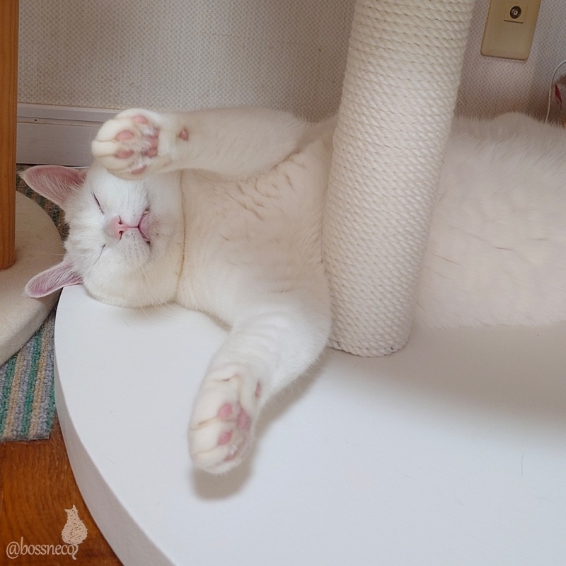 月末休日の休み明け月初 忙しい中でも見逃せなかった白猫Ryu ぱぁ~ฅฅしてたら そのまま寝落ち で、そのあんよもぱぁ~👐 #Blueskyねこ部 #CatsofBlueSky #CatsofBSky #catsky #catlovers — from Bluesky 2025-09-01