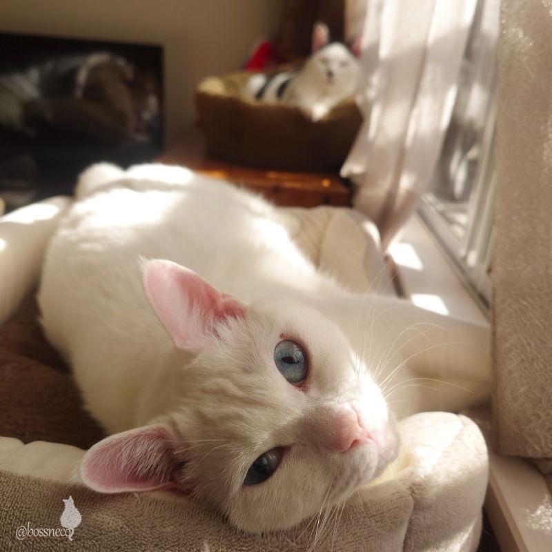 PC見ている私を見ている白猫Ryu を、眺めいている白黒coco 今日はのんびり過ごしましょ #Blueskyねこ部 #CatsOfBlueSky #楽しい我が家 #こんな毎日が大切 — from Bluesky 2025-01-02