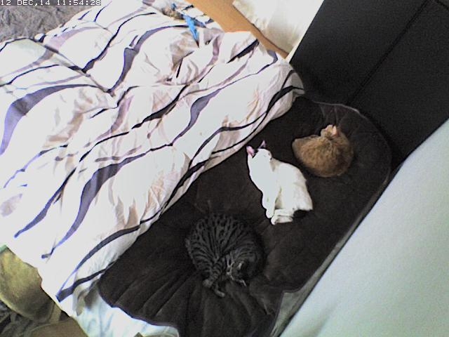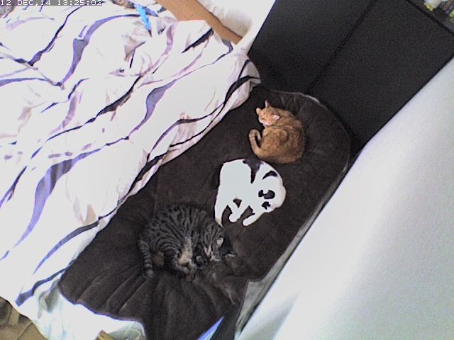 おぉ~! 今日は「ホットマットで3匹そろって寝」計画のとおり、皆さん並んで寝ております。 coco のところ、くぼんでないね。 軽いからなのか、左右の子たちが重いから?? 皆さん爆睡! むふふ あ~そろそろ年末のいろいろ、準備しないとね。 そうそう、今年は壁掛けカレンダーをオリジナルで作ってみることにしました。 さてさてどんな仕上がりになりますかね。 2014-12-12