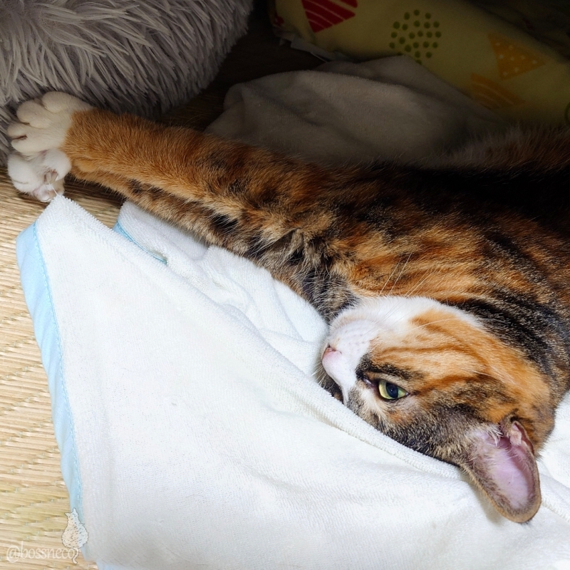 寝てるのかな?って思ったけど お目目はぱっちり おやすみなさい💤 #Blueskyねこ部 #CatsofBlueSky #CatsofBSky #catsky #catlovers — from Bluesky 2025-08-18