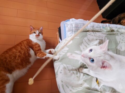いつもならお昼寝している時間なのに、暇そうだったから遊んであげました♪