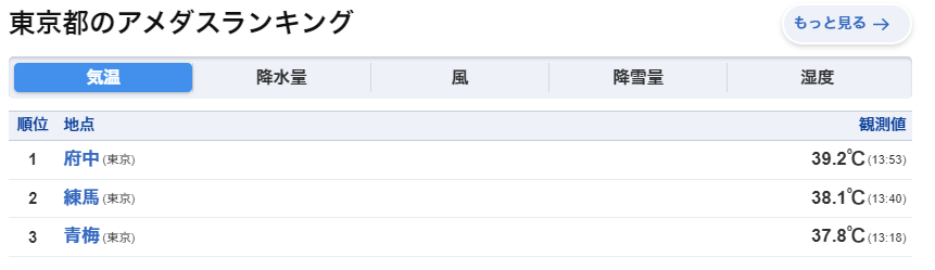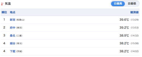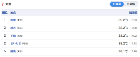 16:10時点で確認したら、関東で一番、全国でも2位の暑さとのこと