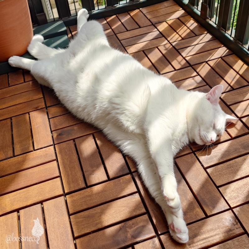 陽向をお腹で満喫している白猫Ryu 兄ちゃんたちは早々にお布団でお昼寝 #ヘソ天 #Blueskyねこ部 #CatsOfBlueSky #楽しい我が家 #こんな毎日が大切 — from Bluesky 2025-05-05