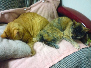 今朝起きた時は弱い雨だったのに、家を出る時間では完全に雪に変わってました。 この冬、東京の初雪がすでに報告されたのかどうかはわからないけど、私の中ではこの冬初雪 でも、都心に着いたら雨でした。 今日はこれから晴れるらしいから少しは気温も上がるかな? << ziziの居場所 (ん~十万円のマッサージチェア占拠)に、ちょっと寝てみたかったlanちゃんが顔を隠して頑張って寝たふりしているところ! ziziはちょっと迷惑… お尻で威圧しています 2011-02-09