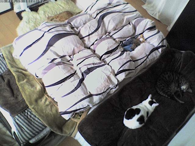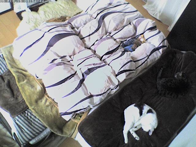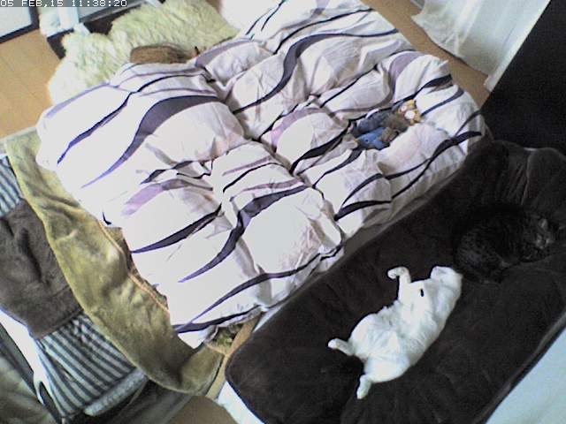 今日は都心で5~10cmの積雪という予報だった…。 確かに、朝少し雪が舞ったけど、そのあとは雨。 寒~い雨。 夕方には雨もやんで、積雪ゼロ。 まぁ、それもよし。 coco、mark の寝顔見てる? お得意のひっくり返り。 寒くないのかな? 今日もゴロゴロ 2015-02-05