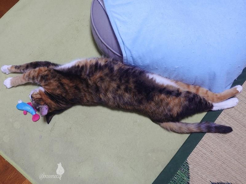 今夜は久しぶりにお外が静かね って言ってたら降ってきた..☔ おやすみなさい💤 良い週末を✨ #ねこ部落ち猫 #ねこ部 #猫部 @catclub.bsky.social #楽しい我が家 #こんな毎日が大切 — from Bluesky 2024-08-30