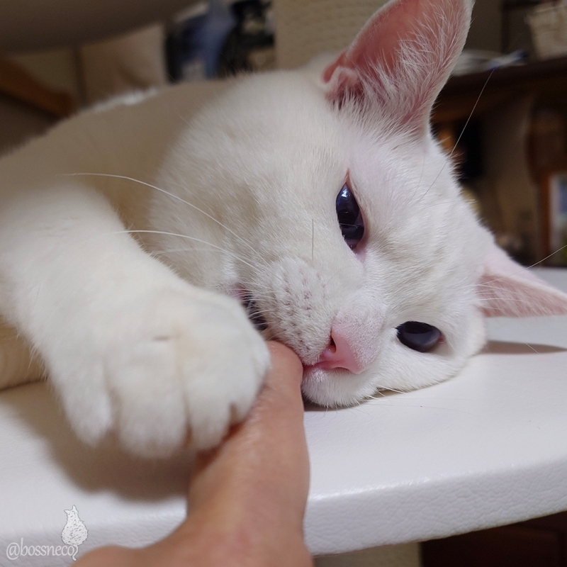 暇そうだったので 指を差し出したら食われました #Blueskyねこ部 #CatsofBlueSky #CatsofBSky #catsky #catlovers — from Bluesky 2026-02-18