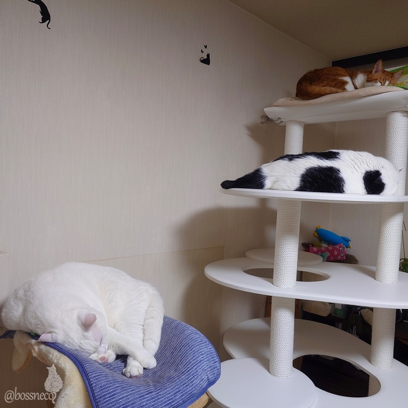 涼しくなったので椅子の下にいた子たちが 高いところで休むようになりました 日中の寒暖差があるので 体調に気をつけたいですね おやすみなさい💤 #Blueskyねこ部 #CatsofBlueSky #CatsofBSky #catsky #catlovers — from Bluesky 2025-09-23