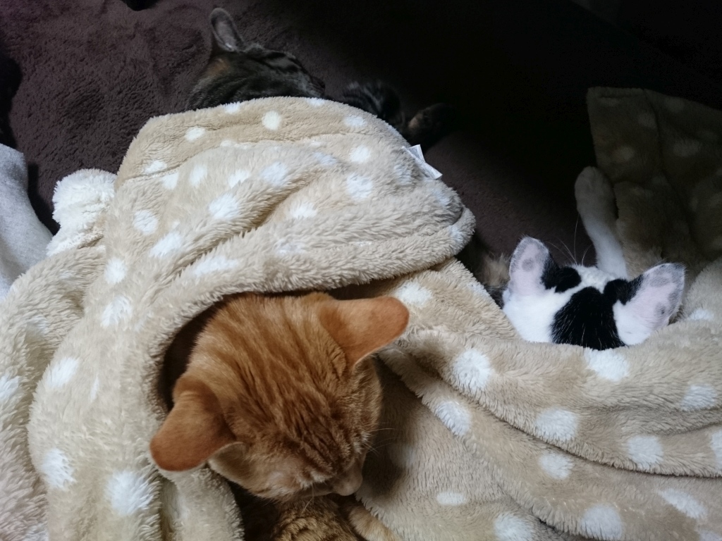 lan & mark & coco部屋が暖まるまでに見られる『猫団子』の風景
