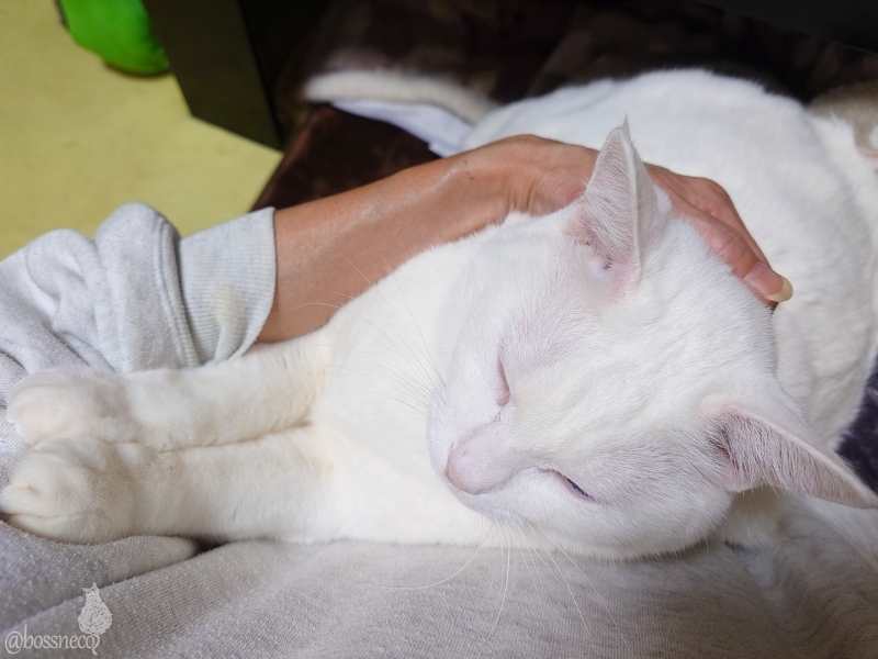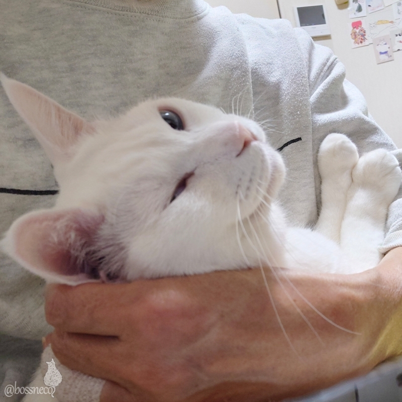 白猫Ryuを抱っこしながら