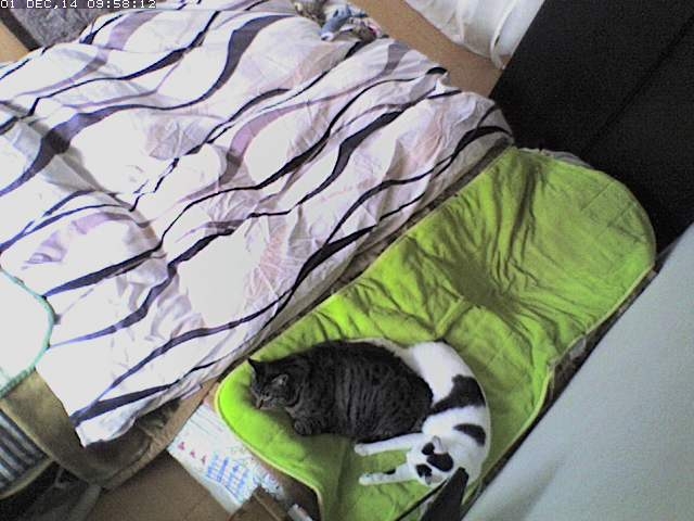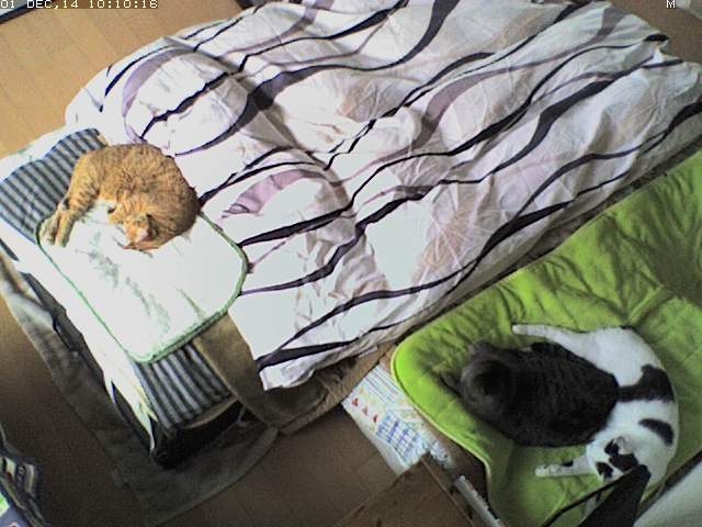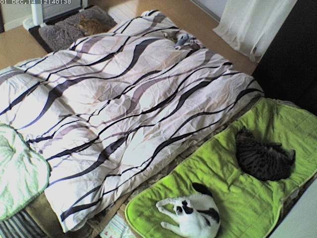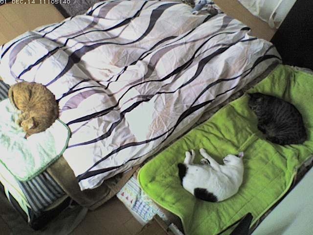 猫ベッド全体を暖かくしてあげたけど、3つが並ぶわけでもなく、なかなかコチラの思っているとおりにならないね。