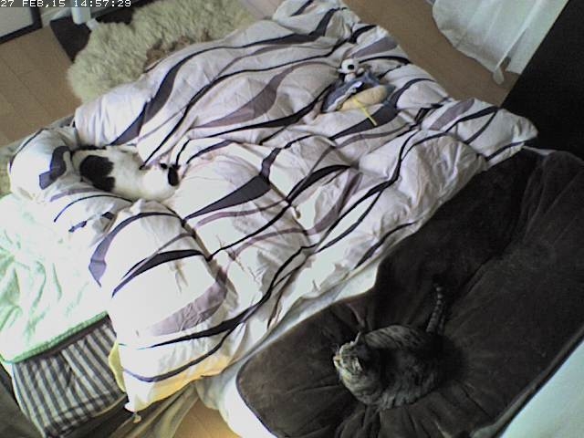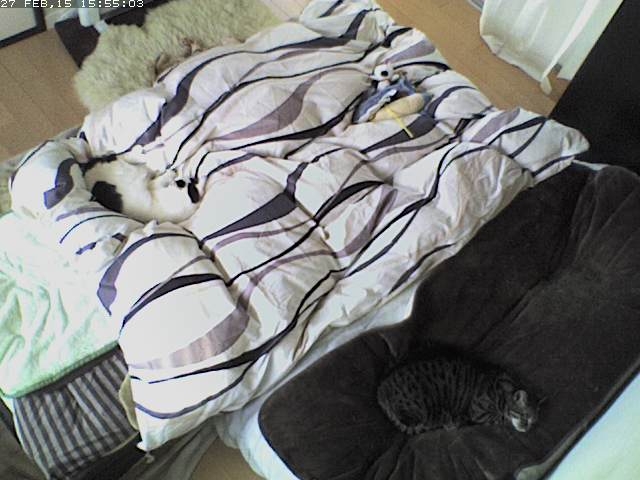 早いもので今日で2月も終わり。 今年の2月のカレンダーは、1日日曜日から始まって28日土曜日まできれいに四角にまとまってます。 ネットでは『数百年に一度』って大袈裟に騒いでる人もいたけど、そんなわけないよね? また coco は mark にくっついてる! coco の姿がわかるのは私だけかなぁ? ベタ~って熟睡中 寝る場所が色々変わるね。 mark 何を考えてるのかな? mark もぐっすり。 2015-02-27