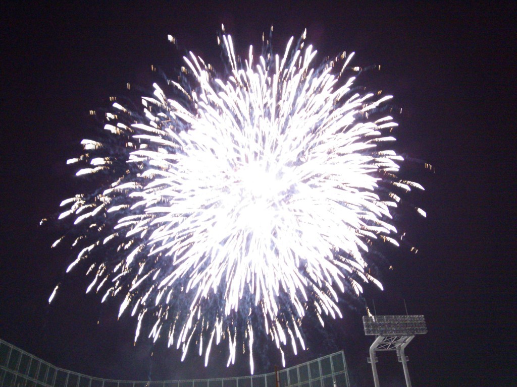 それに、3塁側外野スタンド席から打ち上げられた花火が、とても良く見えて。