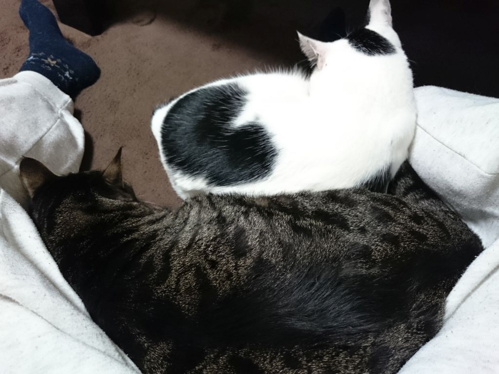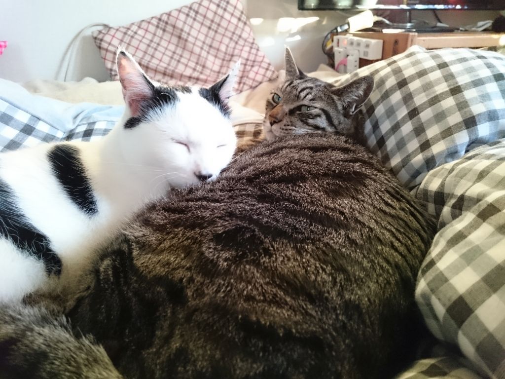 辛いことばかりだった2015年もそろそろ終わり。 でも、相変わらず mark & coco は仲良しで、いつも一緒にくっついてる。 大掃除は30日に決めて、今年最後の週末はゆっくり過ごすことに決定。 撮りためた写真データの整理もしないとね。 おまたね子は今でも健在。 写真の色彩が少し暗くなってる感じ。 lanちゃんの茶トラの赤は貴重だったね。 2015-12-26