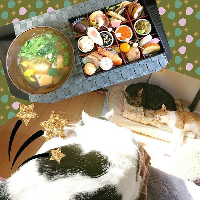 年賀のご挨拶にはたくさんのいいね♡とコメントをありがとうございました🎍 とっても穏やかなお正月を迎えることができました🤗 おせちもお雑煮もいただいて、少々酔っ払っております🍥🍶 うちの子らも寝正月😆 皆さまもかわいい😺ちゃん達とゆっくりまったりとお過ごしください🤗 #cats #catstagram #ねこ #ねこすたぐらむ #にゃんすたぐらむ #猫 #ねこ部 #もちぽよ部 #ペコねこ部 #みんねこ #黒さば #きじとら #とら猫 #白黒猫 #ちゃしろ #茶白猫 — from Instagram 2017-01-01