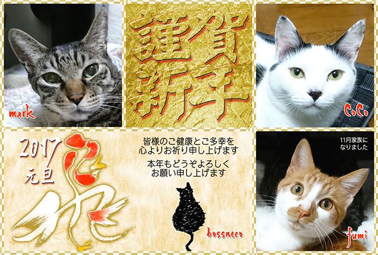 新年あけましておめでとうございます🎍🌄🍡 今年もどうぞよろしくお願いいたします✨ mark & coco & fumi & bossneco #2017年元旦 #2017newyear #cats #catstagram #ねこ #ねこすたぐらむ #にゃんすたぐらむ #猫 #ねこ部 #もちぽよ部 #ペコねこ部 #みんねこ #黒さば #きじとら #とら猫 #白黒猫 #ちゃしろ #茶白猫 — from Instagram 2017-01-01