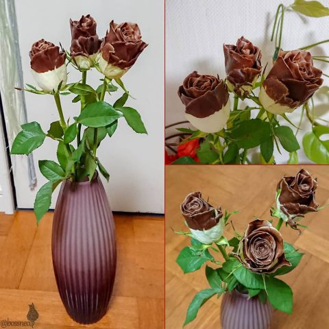 本物のバラ🌹のお花にチョコレート状の特殊ワックスをかけて作られています❣