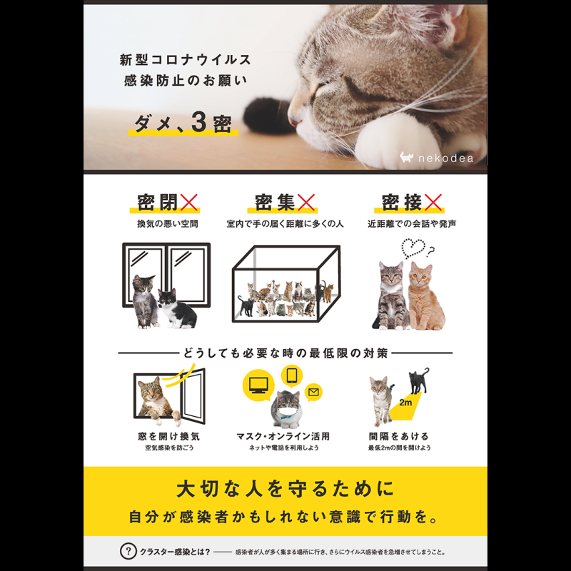 nekodea~ネコデア~ @fugsaya さんで 無料配布されている 「3密防止」の呼びかけポスター この週末も外出は自粛しましょうね 自分が感染者であるという前提で.. #コロナに負けない #コロナに負けるな — from Instagram 2020-04-03