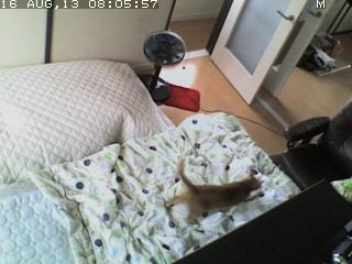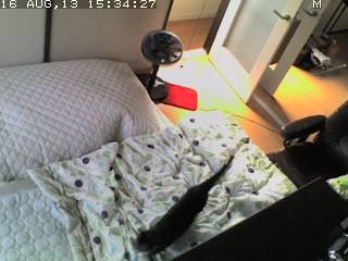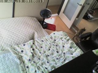 出がけにはまくらの上にいたのに、時間を見ると、私が出かけたすぐに移動したんだね。