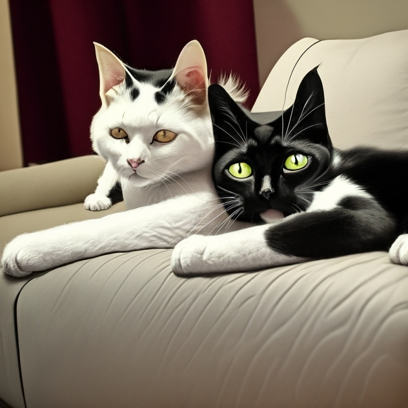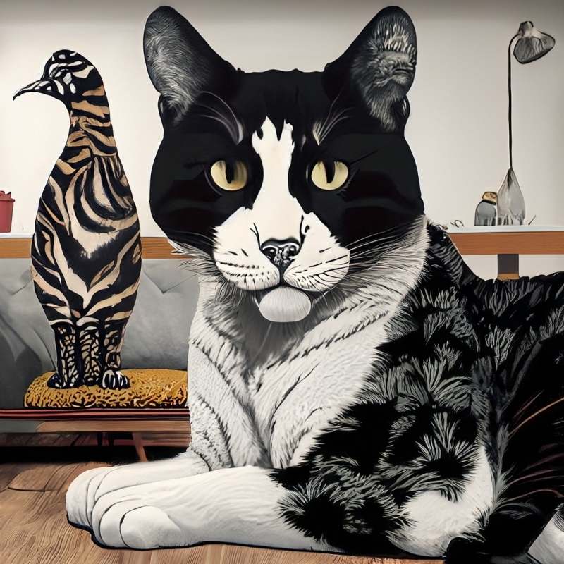 Adobe Firefly web版で 「白黒猫とキジトラ猫が寛いでいるリビング アートな描写」 というテキストで生成 “キジトラ”って..斬新🤣 🎞p.2 「白黒猫が寛いでいるリビング」 白黒柄がcocoにちょっと似ていたので いい気になってやったのが1枚目😂 #adobefirefly #虎柄のキジ — from Instagram 2023-09-14