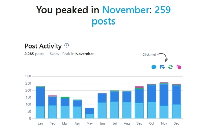 アカウントごとに投稿量などを集計してくれるのでやってみた