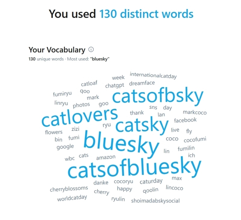 最もよく使われている単語: 「bluesky 」