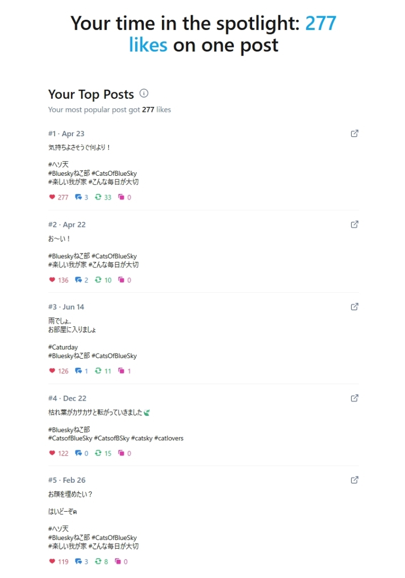 🏆 最もいいねされた投稿: 277件のいいね