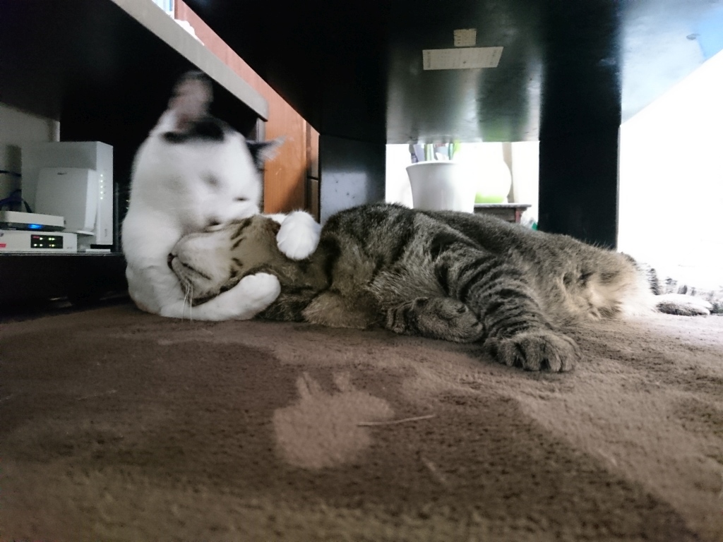 掃除中、開けっ放しにしていた窓から coco 脱走。 ベランダの柵を乗り越えて行っちゃいました。 しばらくは庭でちょろちょろしてたんだけど、その後何処へ。 lan & mark が出ないように部屋を閉めきって、ベランダの開閉するドアを開けて coco の帰還を待つ。 2時間ほどで無事に帰ってきたけど、ずっと心配で気になるし、落ち着かない。 『もう帰ってこなくていいよ』と思う反面、『早く帰ってこないかな』って。 まぁ、こっちが本心だけどね。 coco が帰ってきたときの mark は、しばらく追っかけ回して匂いを嗅いで。 mark も心配してたのかな。 夜はいつもどおりの coco の大好き攻撃。 なにはともあれ、良かったね。 << lan “なにが?” 2015-01-17