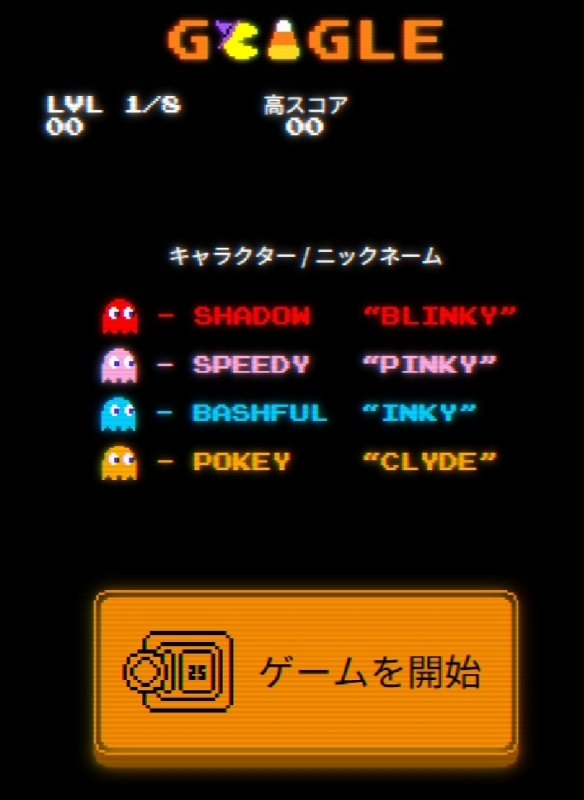 パックマン今日のGoogle Doodleはパックマン