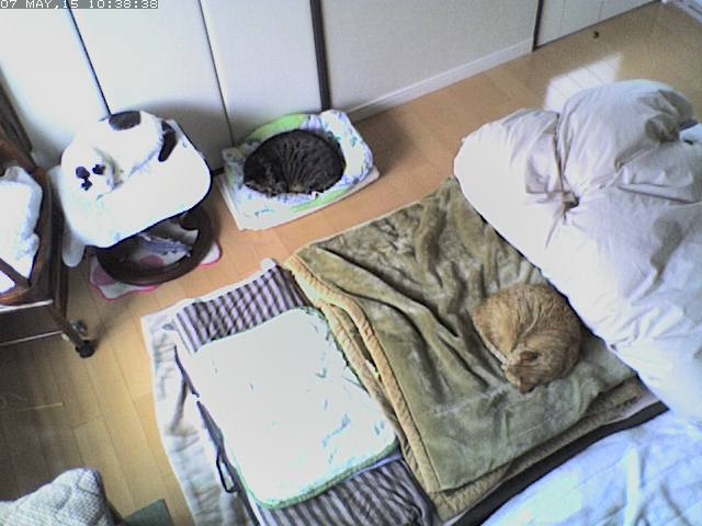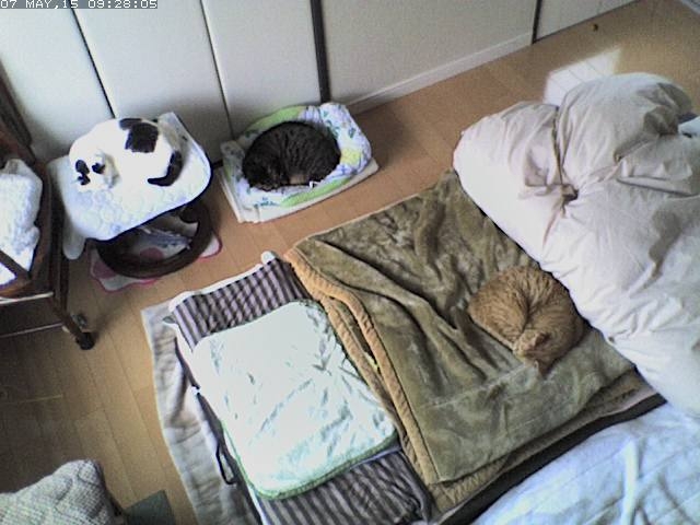 GWも終わり、これからしばらく連休なしの日常が戻ってきました。 今週末は皆さん、お留守番ですよ。 大丈夫かな。 不安いっぱいだけど、速攻で帰ってくるからね。 連休中に coco のためにベッドを用意してあげたけど、すっかり mark が独り占め。 地べたのままだけどよいのかなぁ。 それぞれのお気に入りの場所。 暖かくなってきてるから毛布はもういらないかな? mark はみでてますよ。 2015-05-07