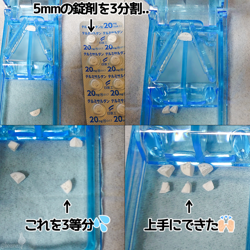 from Instagram5mmの錠剤をmarkの体重に合わせて3分割にする💦