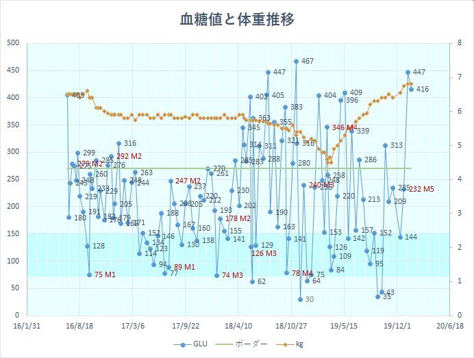 糖尿病の診断でインスリン注射を始めて1302日目の血液検査。