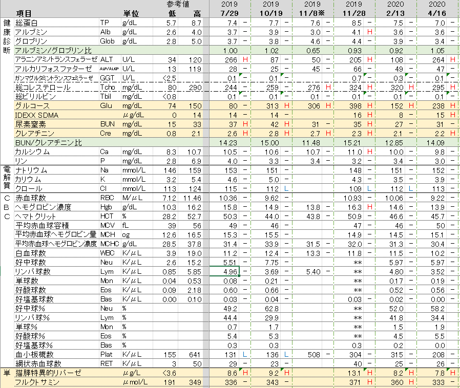 低血糖があったりしてフルクトサミンの平均値を見るために16日にIDEXXでの血液検査を実施
