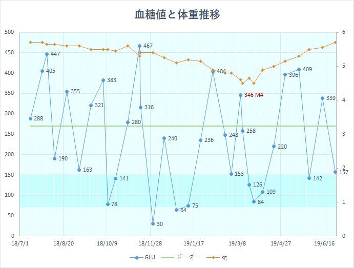 糖尿病の診断でインスリン注射を始めて1400日目の血液検査。