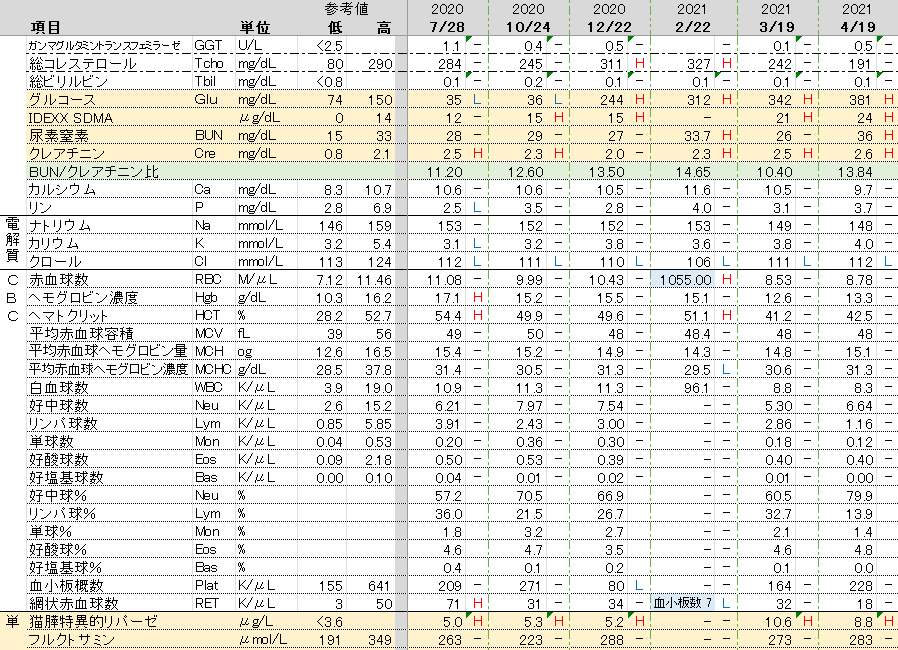 フルクトサミンは基準値内だけど、腎臓も膵臓も数値が上がってきた