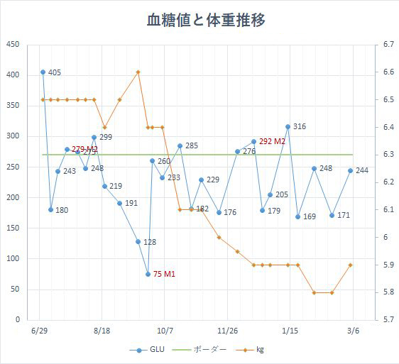 糖尿病の診断でインスリン注射を始めて、246日目の血液検査。