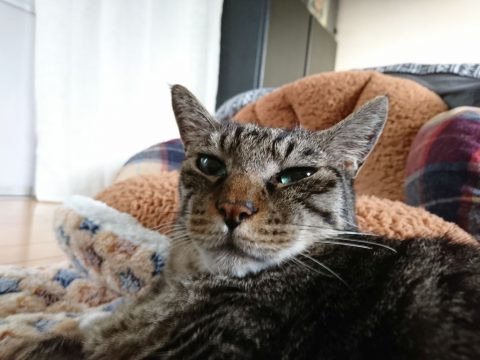 ご飯ちょうだいというのを無視して時間を待っていたのに、cocoたちのカリカリを食べてた。