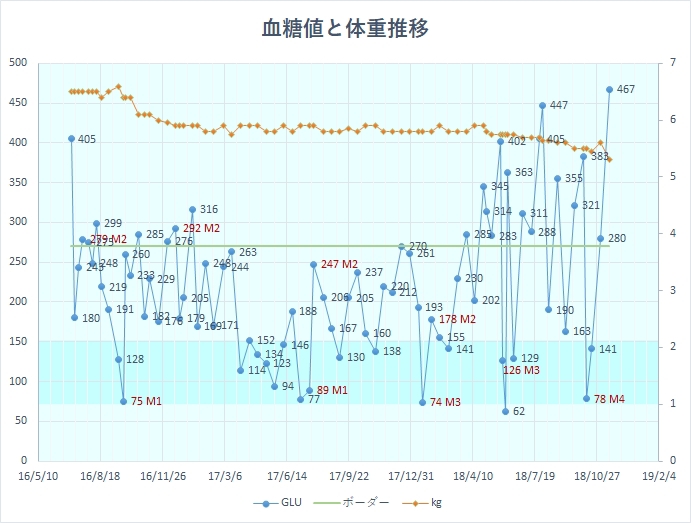糖尿病の診断でインスリン注射を始めて868日目の血液検査。