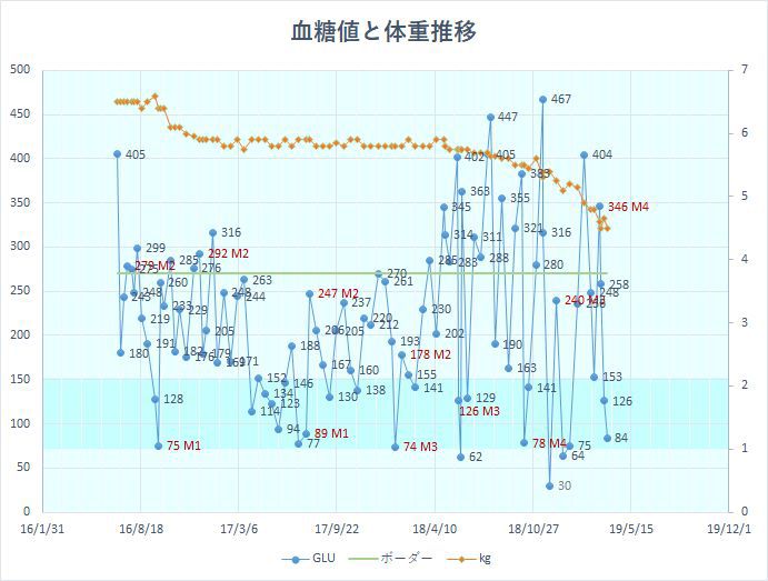 ゆっくりと体重が下がって昨年末1kgくらい減っちゃったあたりから具合があまり良くなかったのかもしれない