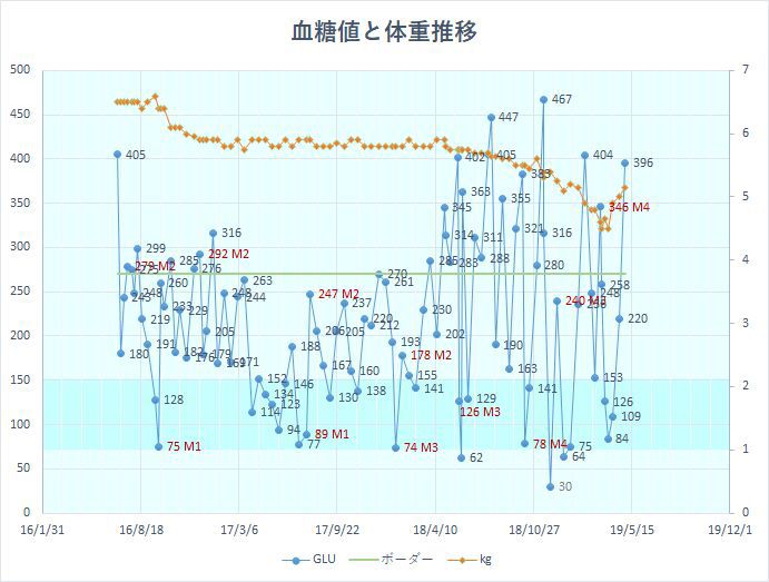 糖尿病の診断でインスリン注射を始めて1035日目の血液検査。